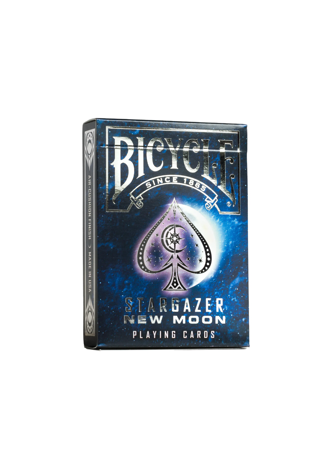 Het Bicycle® Stargazer New Moon deck brengt de gloed van de maan naar je volgende kaartspel. Het op één na stralendste hemellichaam schittert in een speciaal ontworpen illustratie op de rug. Unieke indexen en contrasterende kleuren sieren de voorzijde van de kaarten en het doosje schittert dankzij de accenten in zilverfolie.