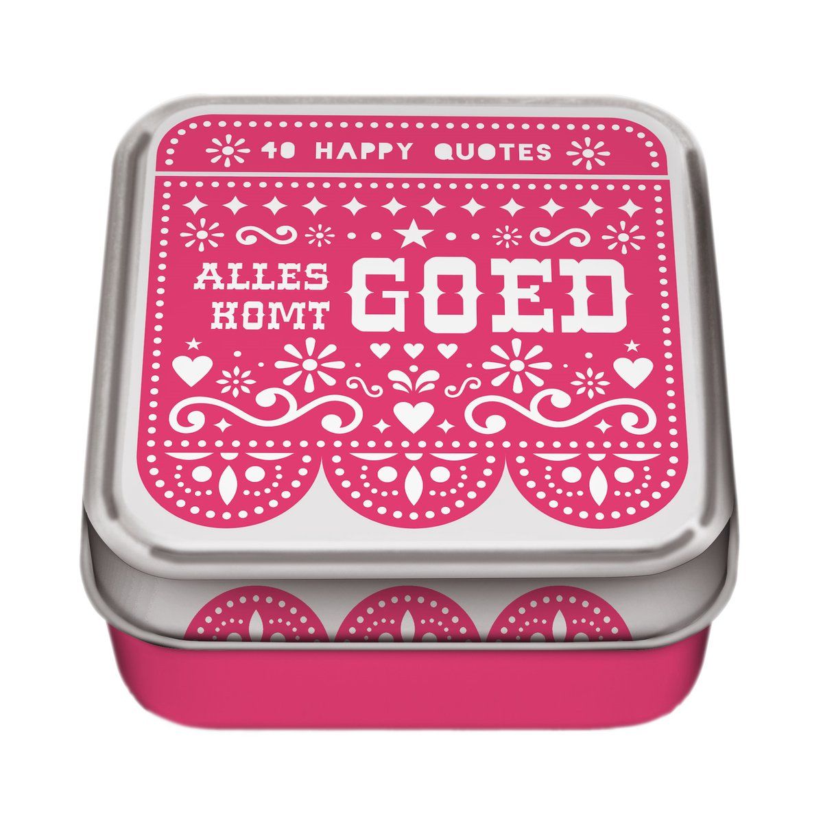 Happy quotes. Durf je te geloven dat alles goedkomt? Vertrouw op het universum en laat je inspireren door deze 40 treffende quotes. Hang de kaartjes op als vrolijke Mexicaanse vlaggetjes en geloof het: alles komt goed! 40 kaartjes