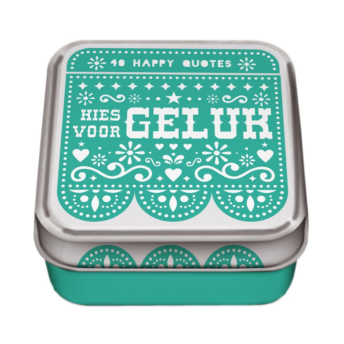 Happy quotes. Is het glas halfvol of halfleeg? Durf te geloven dat geluk overal te vinden is en laat je inspireren door deze 40 treffende quotes. Hang de kaartjes op als vrolijke Mexicaanse vlaggetjes en durf het: kies voor geluk! 40 kaarten